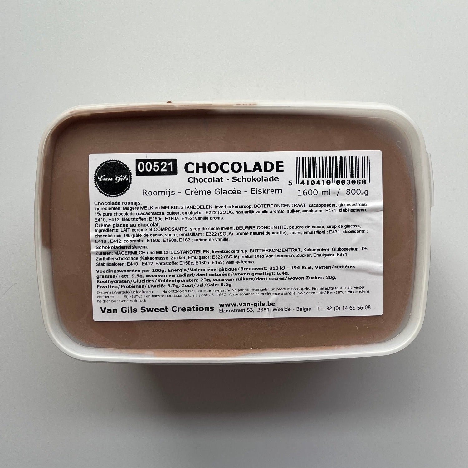 Ingrediënten: magere melk en melkbestanddelen, invertsuikersiroop, boterconcentraat, cacaopoeder, glucosestroop, 1% pure chocolade (cacaomassa, suiker, emulgator: E322 (soja), natuurlijk vanille aroma), suiker, emulgator: E471, stabilisatoren: E410, E412; kleurstoffen: E150c, E160a. E162; vanille aroma.